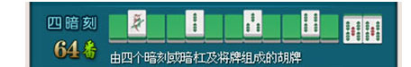 (由4个暗刻或暗杠及将牌组成的和牌)注:自摸构成的刻子算暗刻,碰牌构成的刻子算明刻)
