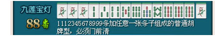 (同花色牌1112345678999+同花色任意一张组成的普通胡牌牌型,必须门前清)