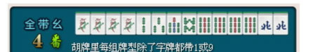 胡牌说明:和牌时将牌是一、九的序数牌(如果胡了清幺九,将不再计幺九头)